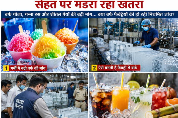 बर्फ गोला, गन्ना रस और शीतल पेयों की बढ़ी मांग… क्या बर्फ फैक्ट्रियों की हो रही नियमित जांच? भीषण गर्मी की शुरुआत के साथ ही बाजारों में ठंडे पेय पदार्थों की मांग अचानक बढ़ गई है। शहर से लेकर कस्बों तक लोग राहत पाने के लिए बर्फ का गोला, गन्ने का रस, शिकंजी और अन्य…