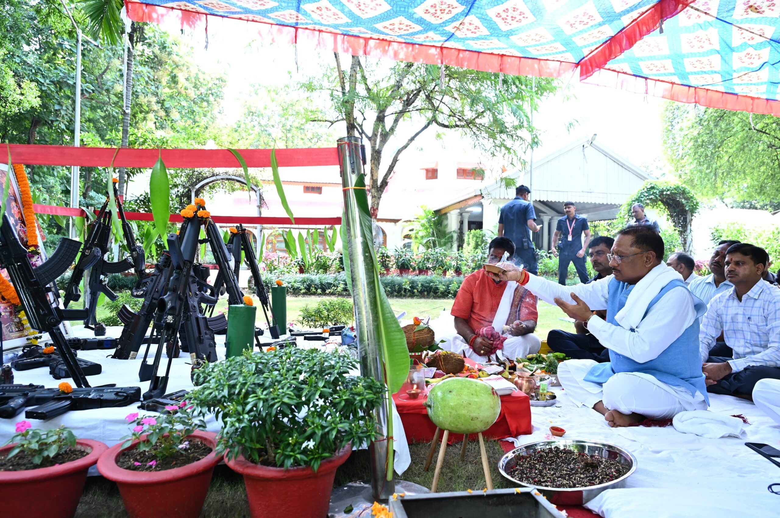 रायपुर 12 अक्टूबर 2024// मुख्यमंत्री श्री विष्णु देव साय आज विजयादशमी के शुभ अवसर पर अपने निवास कार्यालय में आयोजित शस्त्र पूजन में शामिल हुए। उन्होंने विधि-विधान से शस्त्रों की पूजा की और मां भगवती की आराधना की।