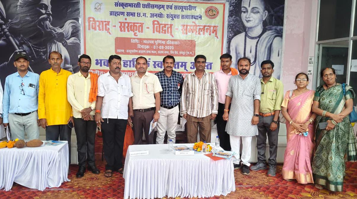 रायपुर। संस्कृत भाषा के संरक्षण और संवर्धन को लेकर राजधानी रायपुर के सरयूपारीण ब्राह्मण सभा भवन में संस्कृत भारती के तत्वावधान में संस्कृत विद्वानों का विराट सम्मेलन आयोजित किया गया। इस सम्मेलन में राज्य ही नहीं बल्कि अन्य राज्यों से भी हजारों संस्कृत विद्वान और शिक्षक शामिल हुए।