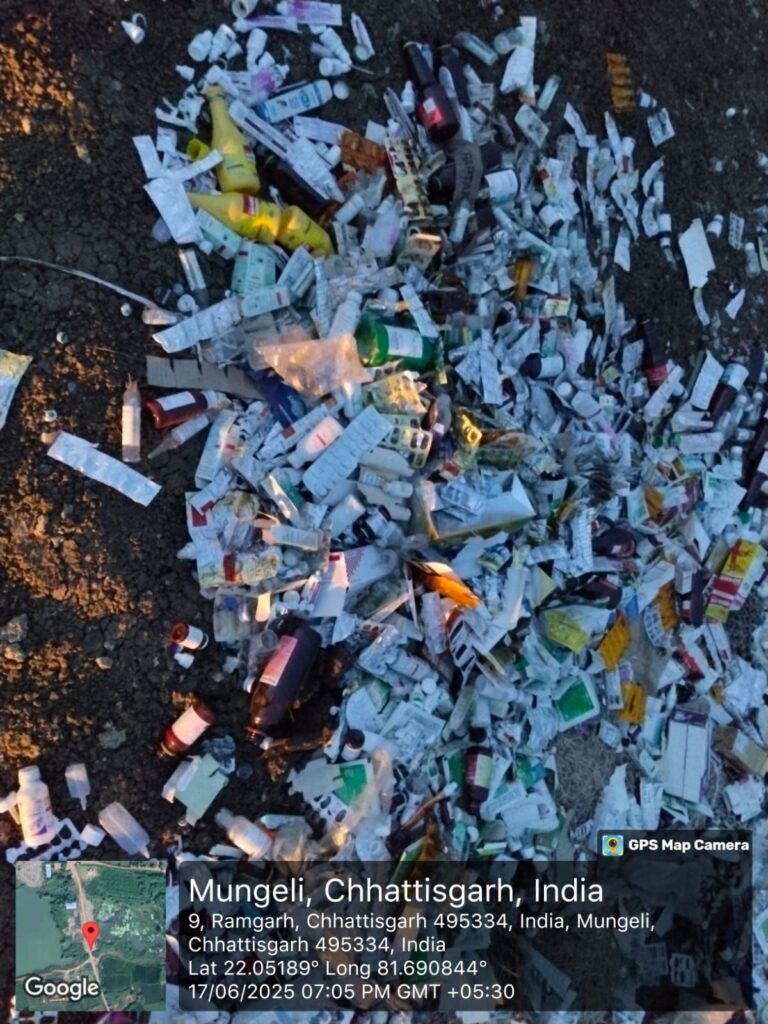 प्लास्टिक कचरे पर कार्रवाई के एक सप्ताह बाद ही नई लापरवाही उजागर – खुले में फेंकी गई एक्सपायर्ड दवाईयां और मेडिकल वेस्ट