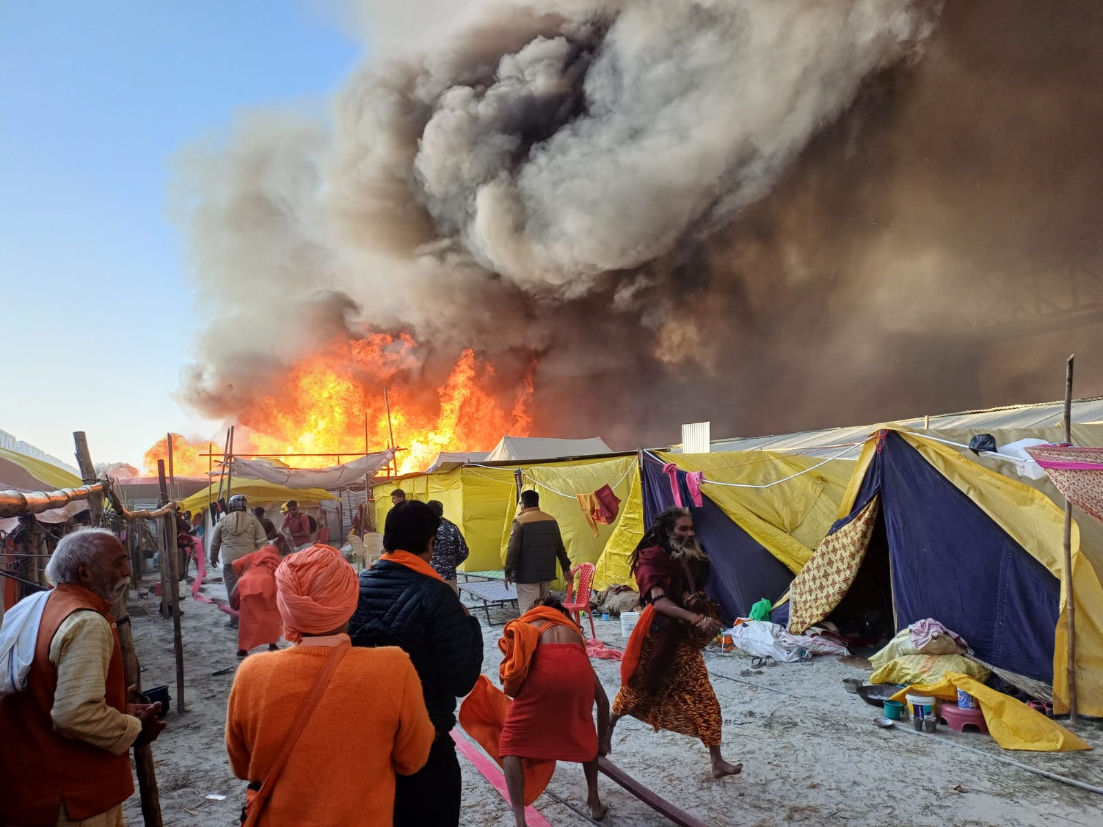 दिगंबर अनी अखाड़े में प्रसाद बनाने के दौरान आग लगी। टेंटों में रखे तीन सिलेंडर ब्लास्ट हो गए, जिससे आग ने विकराल रूप ले लिया।