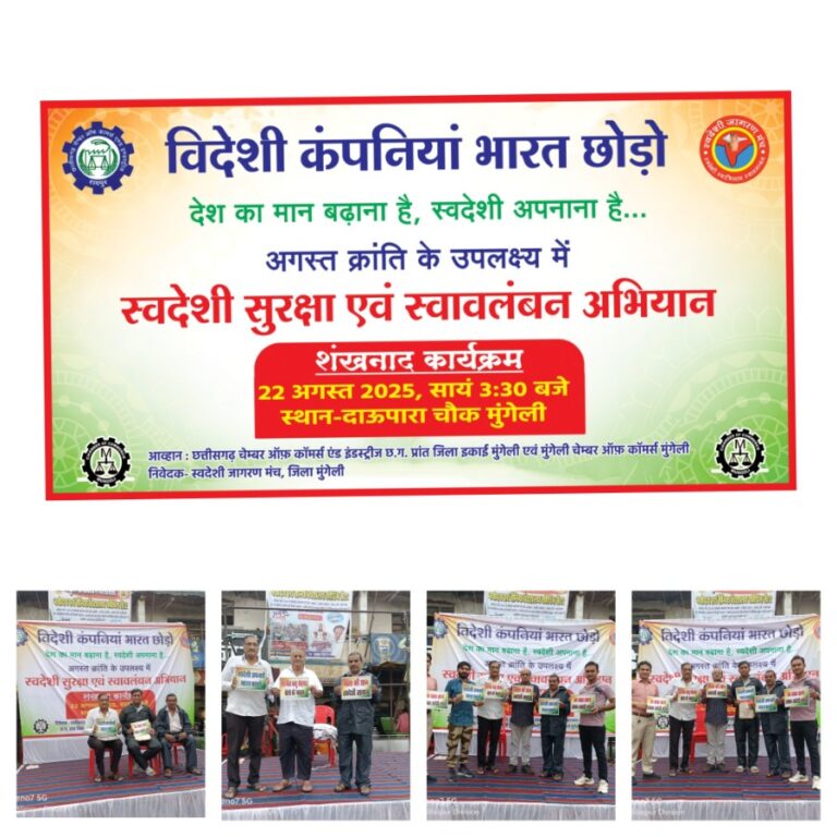 मुंगेली में स्वदेशी सुरक्षा एवं स्वावलंबन अभियान का शंखनाद कार्यक्रम संपन्न