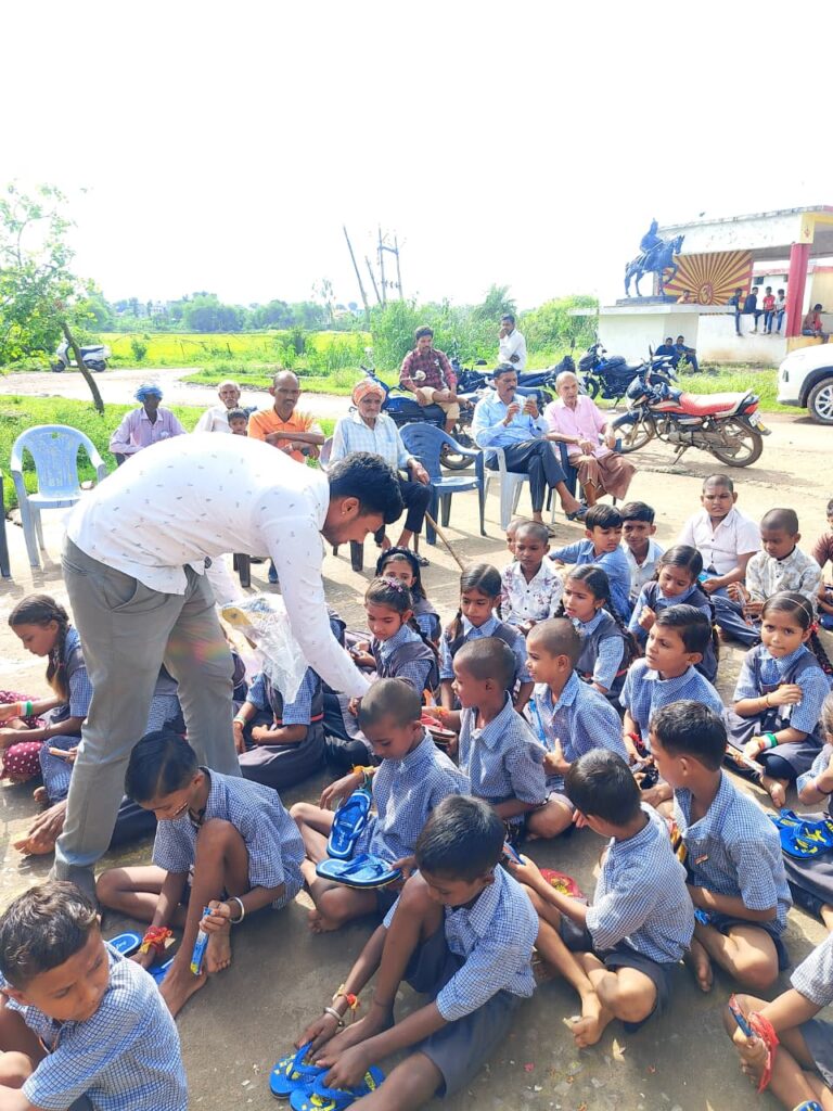 जोगीपुर शासकीय प्राथमिक स्कूल के बच्चों को भूपेंद्र ठाकुर ने बांटे चप्पल