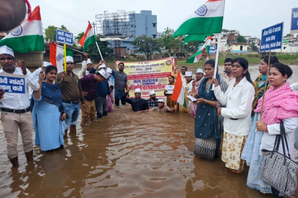 मुंगेली में एनएचएम कर्मचारियों का जल सत्याग्रह, सरकार पर वादाखिलाफी का आरोप