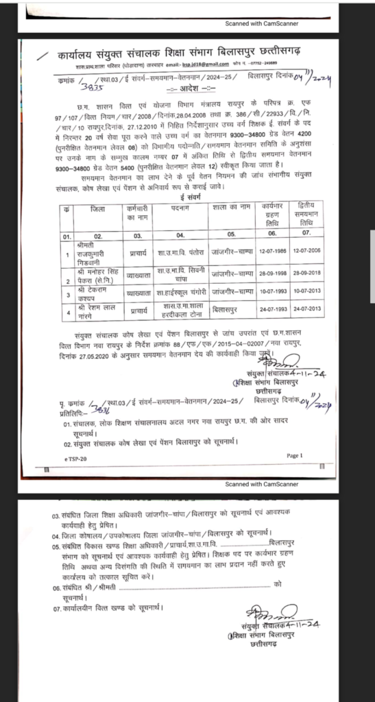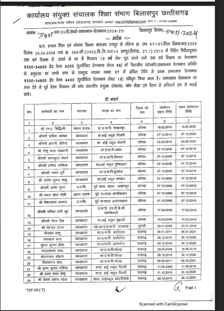 CG- 150 से ज्यादा शिक्षकों को समयमान वेतनमान का आदेश हुआ जारी, देखिये पूरी लिस्ट, जानिये कितना होगा फायदा