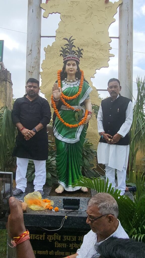 मुंगेली। छत्तीसगढ़ राज्य स्थापना दिवस के अवसर पर शनिवार को मुंगेली मंडी परिसर में स्थित छत्तीसगढ़ महतारी की प्रतिमा पर मालार्पण कर कांग्रेस कार्यकर्ताओं ने राज्योत्सव मनाया। कार्यक्रम की शुरुआत नगर पालिका अध्यक्ष रोहित शुक्ला एवं पूर्व मंडी अध्यक्ष आत्मा सिंह क्षत्रिय ने छत्तीसगढ़ महतारी की पूजा-अर्चना से की। इस दौरान उपस्थित सभी जनों ने “जय छत्तीसगढ़ महतारी” के जयघोष के साथ राज्य के गौरव और अस्मिता का सम्मान किया।