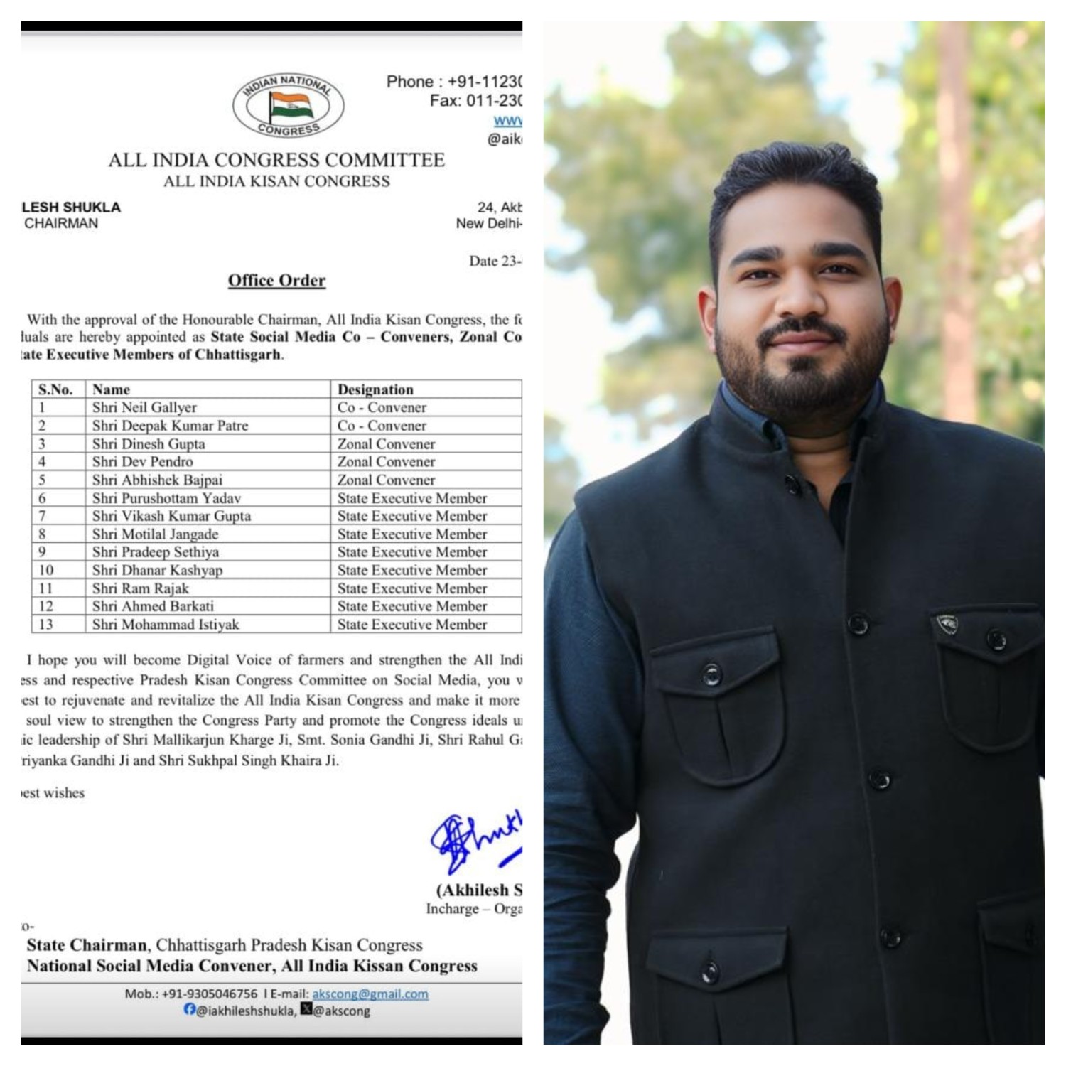 “यह मेरे लिए गर्व और जिम्मेदारी का क्षण है। किसान कांग्रेस के मंच से मैं छत्तीसगढ़ के किसानों की आवाज़ को और तेज़ करूंगा और उनकी समस्याओं को हर स्तर पर उठाने का कार्य करूंगा।”