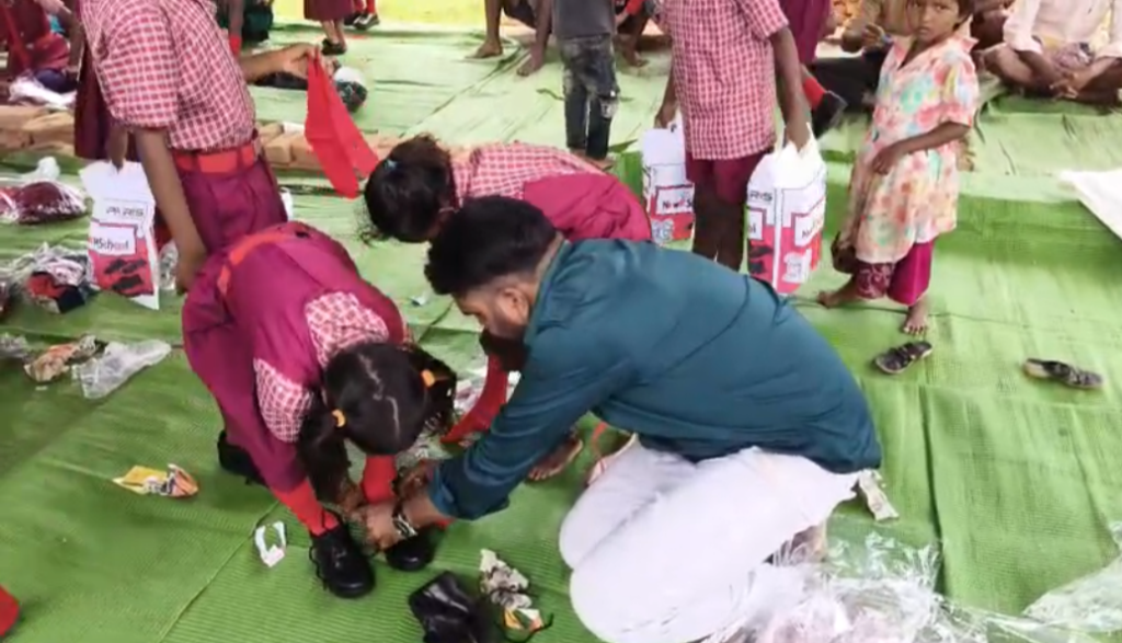 कार्यक्रम की शुरुआत बिरसा मुंडा, सरस्वती माता और छत्तीसगढ़ महतारी के तैलचित्र पर पुष्पहार अर्पित कर एवं दीप प्रज्वलन के साथ हुई। इसके बाद संस्था की ओर से बच्चों को जूते-मोजे और स्कूल यूनिफॉर्म उपहार स्वरूप वितरित किए गए। उपहार वितरण के बाद बच्चों ने स्वागत नृत्य प्रस्तुत किया, जिसे उपस्थित जनों ने खूब सराहा।