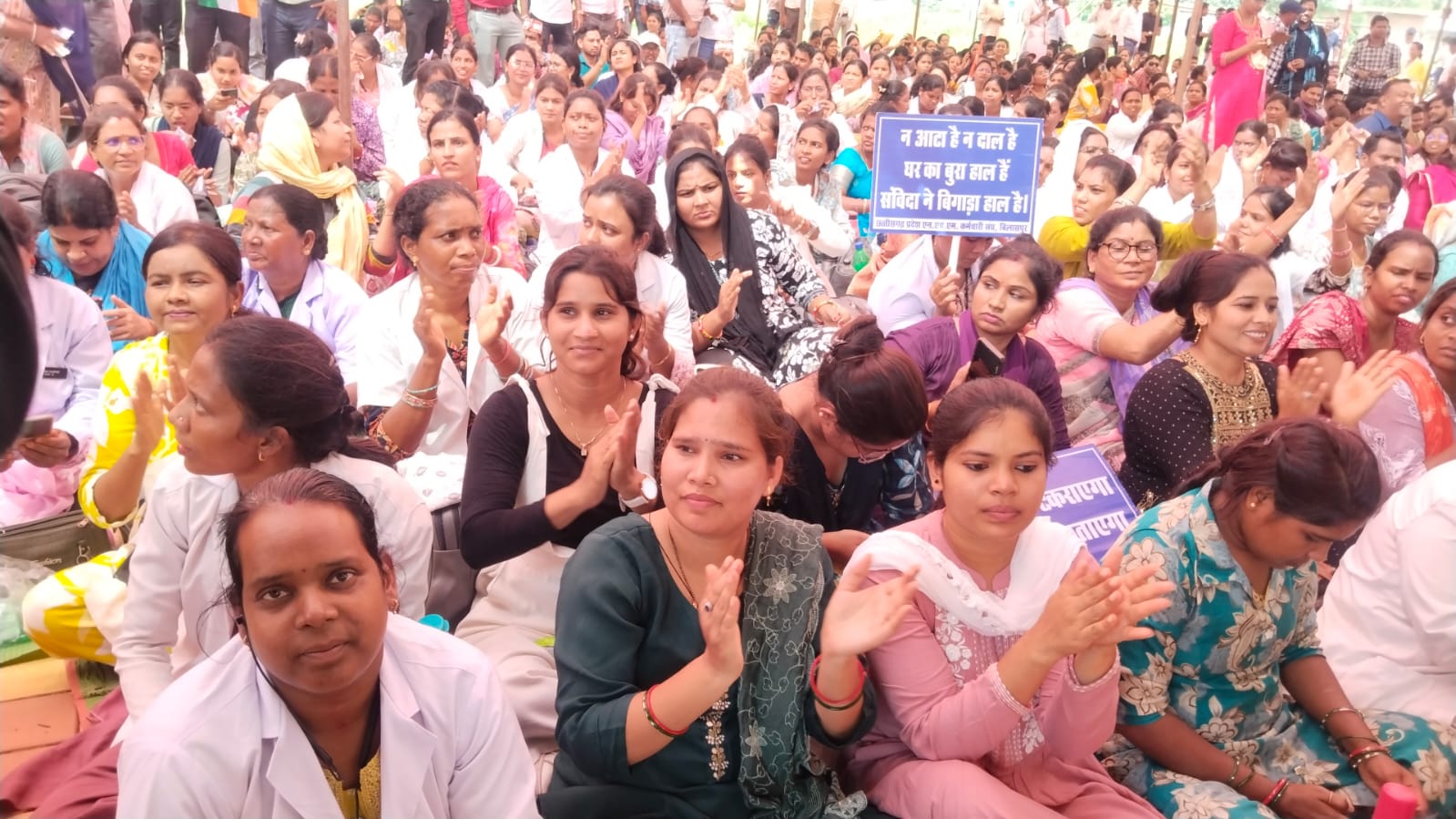 मुंगेली। राष्ट्रीय स्वास्थ्य मिशन (NHM) के संविदा कर्मचारियों का विरोध लगातार तेज होता जा रहा है। अपनी 10 सूत्रीय मांगों को लेकर पिछले एक महीने से हड़ताल पर डटे कर्मचारियों ने मंगलवार को रायपुर के तुता में आयोजित राज्य स्तरीय जेल भरो आंदोलन में बड़ी संख्या में हिस्सा लिया। इस आंदोलन में मुंगेली जिले से भी भारी संख्या में संविदा स्वास्थ्यकर्मी शामिल हुए और जमकर नारेबाजी की।