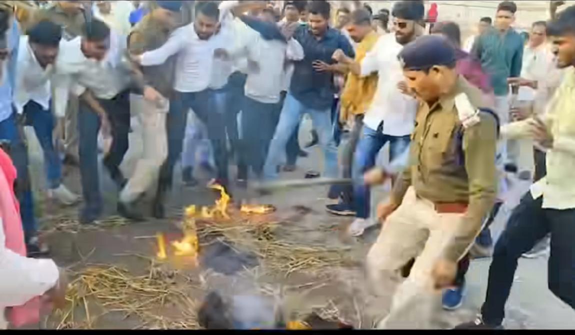 कबीरधाम जिले के नगर पंचायत बोड़ला के एक मंदिर में भगवान की मूर्ति को खंडित किए जाने का मामला सामने आया है। इस मामले में दो दिन बाद भी आरोपी पकड़े नहीं गए है। जबकि, आरोपी को पकड़े जाने की मांग लगातार की जा रहा है। आज बुधवार को कवर्धा के सिग्नल चौक में कांग्रेसियों ने कवर्धा विधायक व डिप्टी सीएम गृहमंत्री विजय शर्मा का पुतला फूंका है।