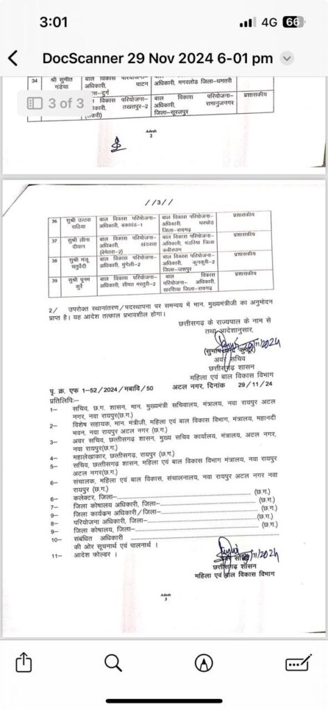 Raipurमहिला-बाल विकास विभाग में बड़े पैमाने पर ट्रांसफर: जिला कार्यक्रम अधिकारी हुए प्रभावित, देखें लिस्ट… Chhattisgarh Times News1 year ago1 year ago01 mins रायपुर। महिला एवं बाल विकास विभाग कें आज बड़े पैमाने पर जिला कार्यक्रम अधिकारियों का ट्रांसफर किया गया है। देखें आर्डर Post navigation Previous: Surajpur double murder case: हेड कांस्टेबल की पत्नी और बेटी की हत्या के मामले में आरक्षक बर्खास्त, जानें क्या मिला जांच कमेटी की रिपोर्ट मेंNext: किसानों के साथ हुआ इतना बड़ा धोखा प्रेस वार्ता कर कांग्रेस ने किया खुलासा Leave a Reply Cancel replyYour email address will not be published. Required fields are marked *Comment * Name * Email * Website Save my name, email, and website in this browser for the next time I comment.