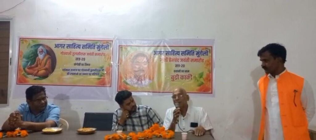 मुंशी प्रेमचंद की प्रसिद्ध कहानी बूढ़ी काकी का वाचन विभा सोनी व अभिलाषा पांडे द्वारा किया गया। कार्यक्रम में प्रेस क्लब मुंगेली के सचिव योगेश शर्मा ने तुलसीदास के जीवन और साहित्यिक योगदान को रेखांकित करते हुए कहा कि तुलसीदास ने संसार को सबसे अधिक जनप्रिय महाकाव्य ‘रामचरितमानस’ दिया, जो आज भी प्रत्येक घर में पाया जाता है।