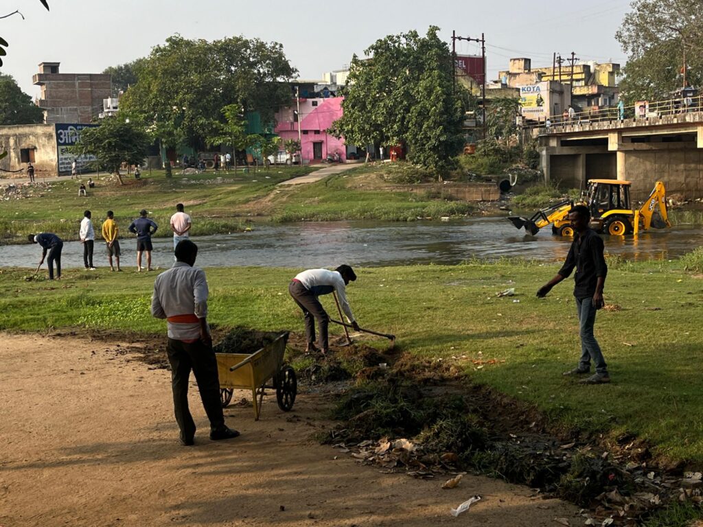 मुंगेली कलेक्टर राहुल देव ने दीपावली गोवर्धन पूजा की छुट्टी के पूर्व ही छठ घाट की साफ सफाई एवं सभी व्यवस्थाओं से संबंधित अधिकारियों को जरूरी निर्देश दे दिए थे। जिसके बाद सभी संबन्धित अधिकारियों द्वारा छठ समिति से संपर्क कर ज़रूरी व्यवस्थाओं को लेकर चर्चा की। आज सुबह से ही मुख्य नगर पालिका अधिकारी आशीष तिवारी सबसे पहले छठ घाट की साफ सफाई की व्यवस्था देखने निकल पड़े. उन्होंने मुंगेली शहर में स्थित आगर नदी छठ घाट का निरीक्षण किया और मौके पर मौजूद नगर पालिका कर्मचारियों को छठ पूजा करने वाले सभी व्रतियों के लिए सभी जरूरी बुनियादी सुविधाएं उपलब्ध कराने का आदेश दिया. मुख्य रूप से बिजली, पानी, स्वच्छ छठ घाट आदि की व्यवस्था करने को कहा.