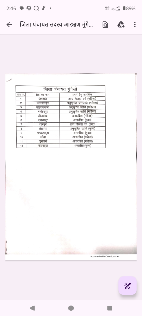 जिला पंचायत प्रशासन ने कहा कि यह सूची क्षेत्र के आरक्षण और वर्गों के प्रतिनिधित्व को ध्यान में रखकर तैयार की गई है। संबंधित क्षेत्र के नागरिक इस सूची का अवलोकन कर सकते हैं और अधिक जानकारी के लिए पंचायत कार्यालय से संपर्क कर सकते हैं।