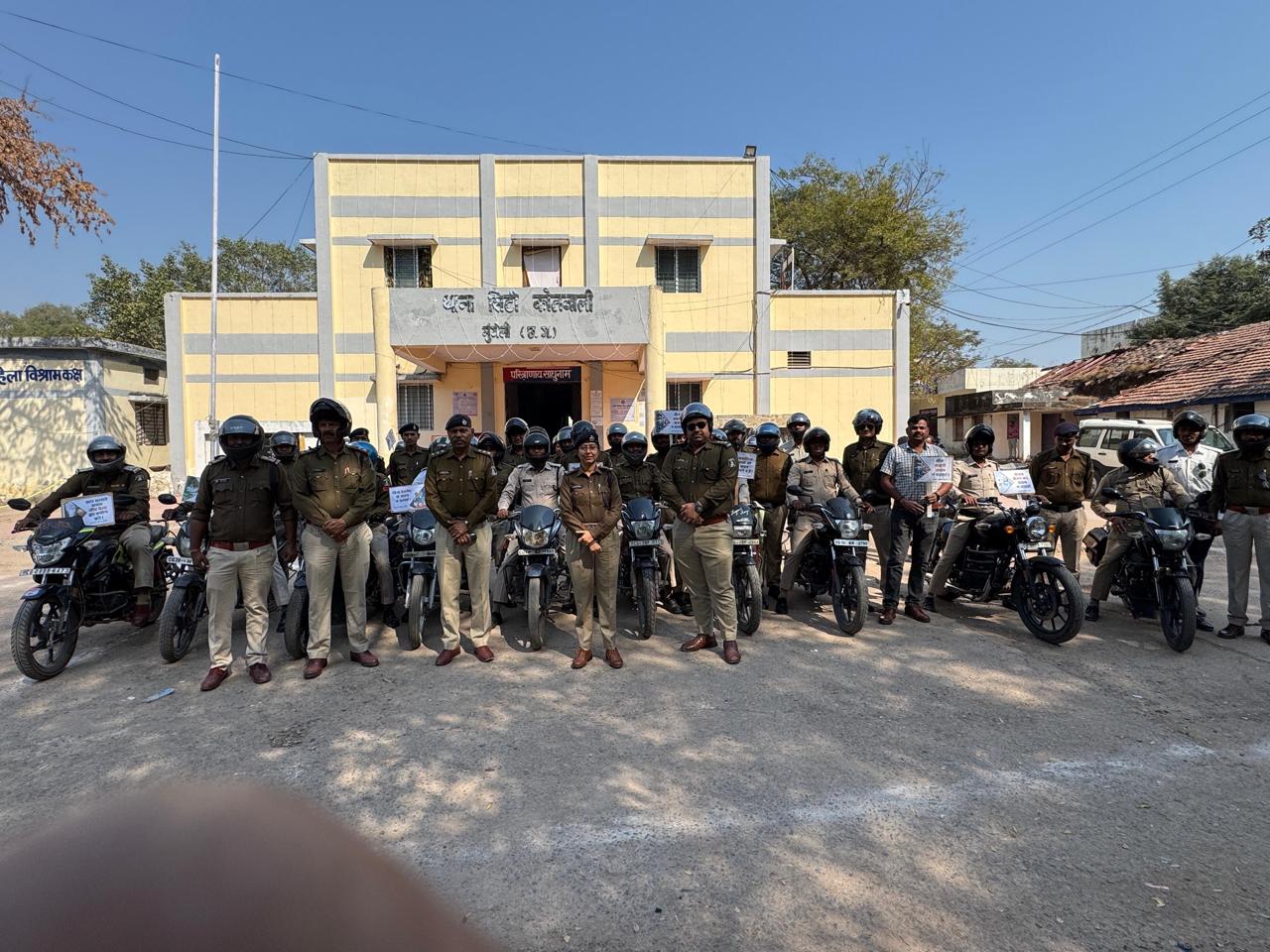 यह अभियान पुलिस अधीक्षक भोजराम पटेल के मार्गदर्शन और अतिरिक्त पुलिस अधीक्षक श्रीमती नवनीत कौर छबड़ा के निर्देशन में संचालित किया गया। रैली में यातायात पुलिस, कोतवाली स्टाफ, पुलिस लाइन, एसपी कार्यालय और थाना अजाक के अधिकारी-कर्मचारी शामिल हुए।