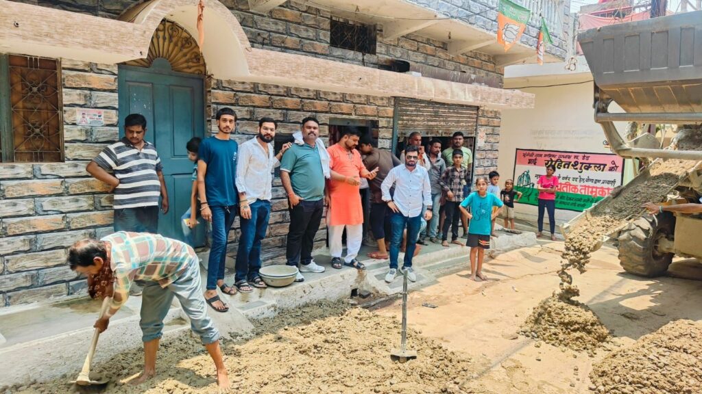 सुभाष वार्ड में सीसी रोड निर्माण कार्य का निरीक्षण करने पहुंचे अध्यक्ष रोहित शुक्ला