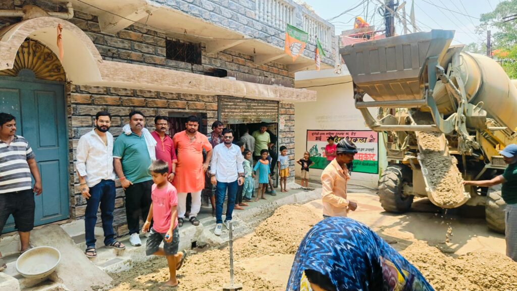 सुभाष वार्ड में सीसी रोड निर्माण कार्य का निरीक्षण करने पहुंचे अध्यक्ष रोहित शुक्ला