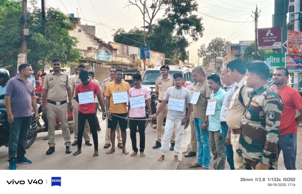 ऑपरेशन बाज के तहत मुंगेली पुलिस ने 8 तस्करों को गिरफ्तार कर पूरे शहर में घुमाया। आरोपियों से ही लगवाए गए नारे – “हम हैं नशा के सौदागर, हमसे बचिए।”