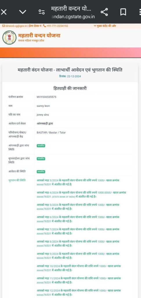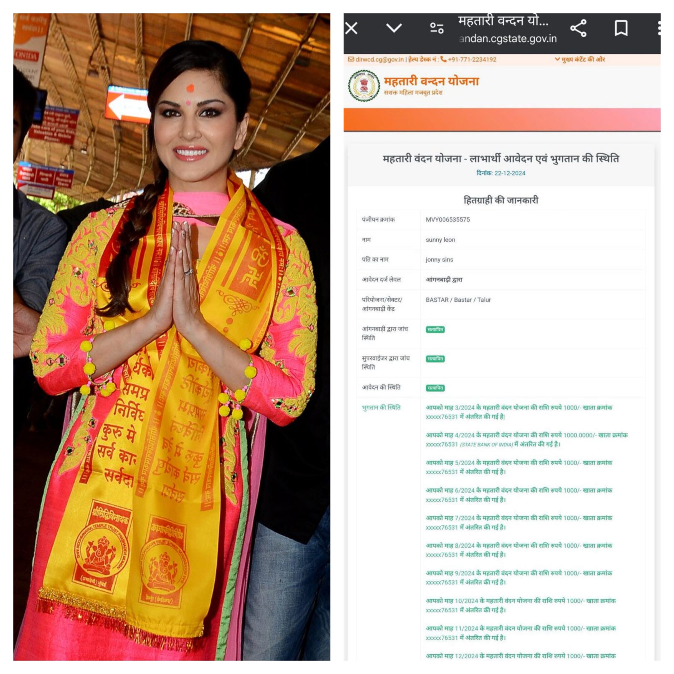 जिला कार्यक्रम अधिकारी के अनुसार, मीडिया में आई खबर के बाद जांच शुरू हुई जिसमें पता चला कि ग्राम तालुर में सनी लियोन के नाम से फर्जी पंजीकरण किया गया था। यह पंजीकरण ग्राम की आंगनवाड़ी कार्यकर्ता वेदमती जोशी की आईडी से हुआ था।