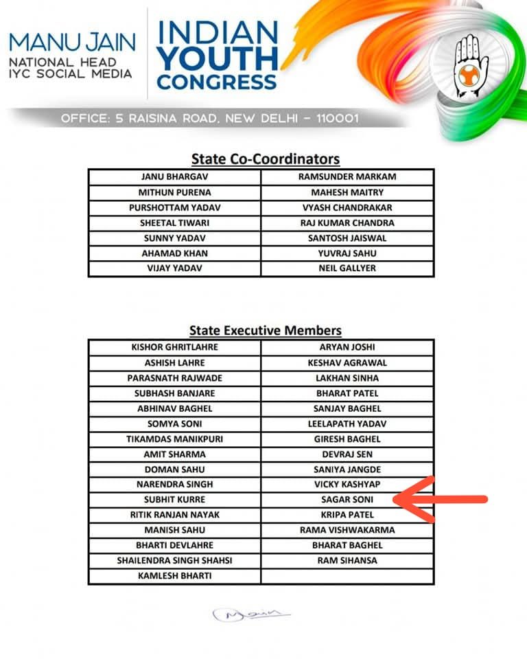 मुंगेली, 14 जून 2025 // युवा कांग्रेस के सक्रिय और ऊर्जावान कार्यकर्ता सागर सोनी को छत्तीसगढ़ युवा कांग्रेस सोशल मीडिया प्रकोष्ठ की प्रदेश कार्यकारिणी में सदस्य के रूप में नियुक्त किया गया है। इस महत्वपूर्ण जिम्मेदारी को पाकर सागर सोनी ने पार्टी के शीर्ष नेतृत्व और वरिष्ठ पदाधिकारियों के प्रति आभार व्यक्त किया है।