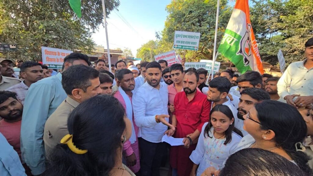 पथरिया। महंगी बिजली, सुशासन तिहार कार्यक्रम में हुई कथित राशि गबन और शासकीय विद्यालय परिसर में शराब माफियाओं की गतिविधियों के विरोध में छत्तीसगढ़ प्रदेश युवा कांग्रेस के आह्वान पर पथरिया में वृहद प्रदर्शन किया गया। प्रदेश युवा कांग्रेस अध्यक्ष आकाश शर्मा के नेतृत्व में बड़ी संख्या में युवा कार्यकर्ताओं और कांग्रेस पदाधिकारियों ने रैली निकालते हुए नारेबाजी के साथ एसडीएम कार्यालय का घेराव किया। इससे पूर्व सामुदायिक स्वास्थ्य केंद्र परिसर में सभा का आयोजन किया गया, जिसकी शुरुआत महात्मा गांधी के छायाचित्र पर माल्यार्पण से हुई।