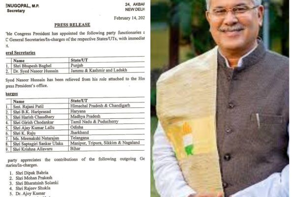 रायपुर, 14 फरवरी 2025// छत्तीसगढ़ के पूर्व मुख्यमंत्री भूपेश बघेल को कांग्रेस पार्टी में बड़ी जिम्मेदारी सौंपी गई है। उन्हें राष्ट्रीय महासचिव नियुक्त किया गया है और पंजाब राज्य की जिम्मेदारी दी गई है। लंबे समय से भूपेश बघेल के राष्ट्रीय महासचिव बनने की अटकलें लगाई जा रही थीं, जो अब सच साबित हुई हैं।…