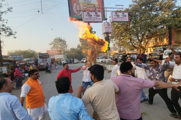 ईडी और केंद्र सरकार के खिलाफ कांग्रेस का प्रदर्शन, जिला कांग्रेस मुंगेली द्वारा पुतला दहन