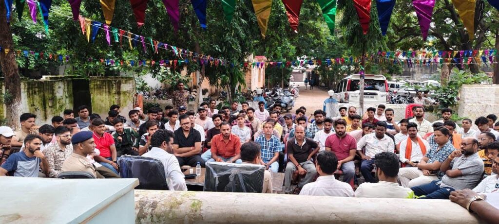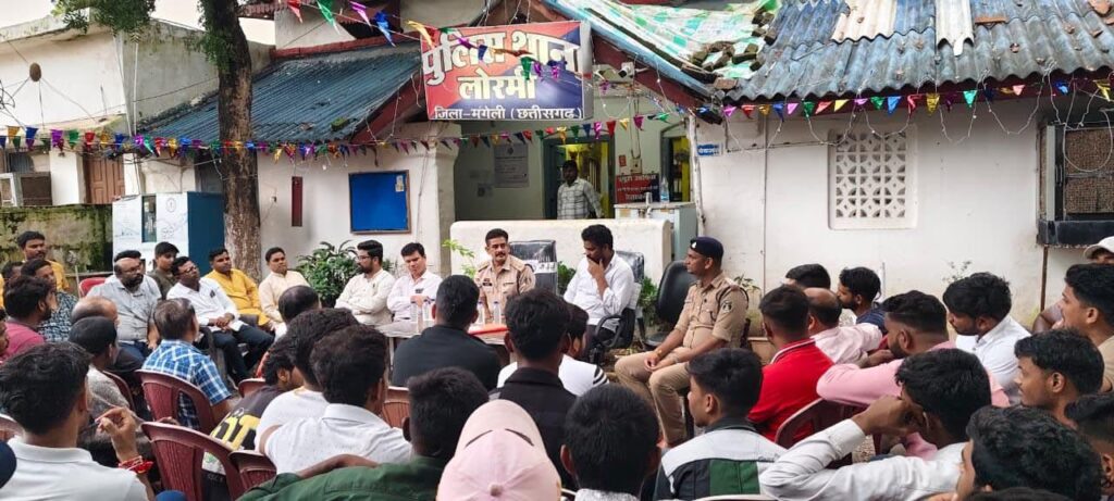 लोरमी // नगर में गणेश उत्सव को शांति व सौहार्दपूर्वक मनाने के उद्देश्य से थाना परिसर में शांति समिति की बैठक आयोजित की गई। बैठक में प्रशासनिक अधिकारी, जनप्रतिनिधि, गणेश समिति सदस्य, डीजे व बैण्ड संचालक मौजूद रहे। इस दौरान पर्व के दौरान पालन किए जाने वाले दिशा-निर्देशों पर विशेष चर्चा की गई।