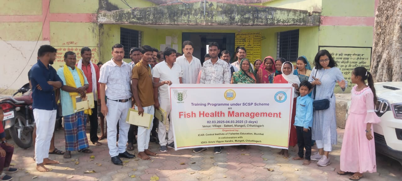 मुंगेली, 04 मार्च 2025 // कृषकों और महिला समूहों को मत्स्य पालन में आधुनिक तकनीकों और रोग प्रबंधन के बारे में जागरूक करने के उद्देश्य से ग्राम सकेरी में तीन दिवसीय प्रशिक्षण कार्यक्रम का शुभारंभ किया गया। इस कार्यक्रम का आयोजन केन्द्रीय मात्स्यकीय शिक्षा संस्थान, मुम्बई द्वारा कृषि विज्ञान केंद्र, मुंगेली के संयुक्त तत्वाधान में किया गया। यह प्रशिक्षण अनुसूचित जाति उपयोजना (SCSP) के तहत आयोजित किया जा रहा है।